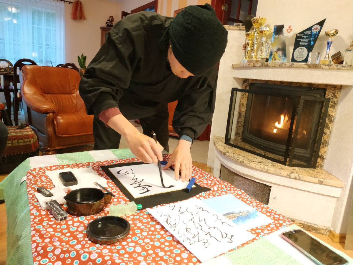 I was born and raised in Japan, in a place rich in nature. I have been doing calligraphy since I was a child, and I still continue to do so. The characters I often write are old Japanese characters. It is called Kana, and has been around in Japan for over a thousand years. This character was created in Japan based on Chinese characters. I would like to use it to create works of art with a free and artistic sensibility.